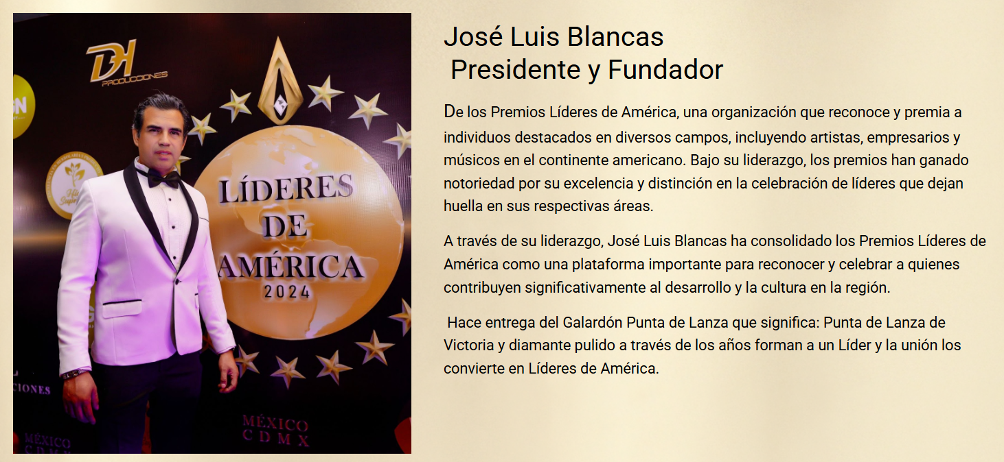 El Premio «Líderes de América» es un reconocimiento otorgado a destacadas personalidades en diversas áreas, como política, empresarial, cultural, ciencia, entre otros, que han contribuido significativamente al desarrollo y progreso en América Latina. Este premio busca resaltar a nivel internacional el liderazgo, la innovación y el impacto positivo que estas figuras tienen en sus respectivos campos y en la sociedad en general.