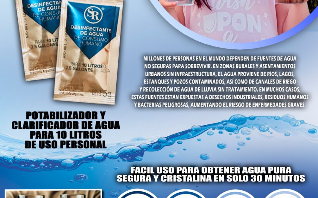 El sistema desarrollado, denominado SR Agua de Vida, permite potabilizar y clarificar agua en cuestión de minutos, eliminando metales pesados como el arsénico, además de reducir la turbidez y mejorar la calidad del agua para consumo humano. Fabricado en Argentina, este dispositivo fue pensado para ser portable, rápido y de bajo costo, adaptándose a entornos rurales, escuelas, hospitales y zonas afectadas por crisis hídricas.